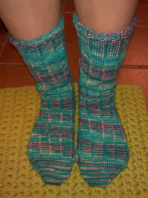 Tällä viikolla olen yrittänyt kuluttaa pois lankavarastojani. Niitä nimittäin riittää. Nalle on kivan ohut lanka lasten sukkiin, mutta tuo 7 veljestä on ehkä näin pieniin liiankin paksua. Sitä oli vaan niin pieni jämä jäljellä, etten oikein viitsinyt sitä enää säästellä. Vielä jäi pieni nyytti, josta syntyy seuraaviin sukkiin raita reunaan. Yksivärinen lila lanka on Novitan Jussia, josta ne seuraavat, aikuisten kokoiset ovatkin sitten jo tekeillä. Pienet lilasävyiset sukat tein eilisen koulutuspäivän aikana, kun tällaisia on niin nopea neuloa. Ehkä sitten voisin ottaa tossuja työn alle, ettei vallan ala kyllästyttää nämä pelkät perussukat. Hyvää sukkaviikkoa kaikille!